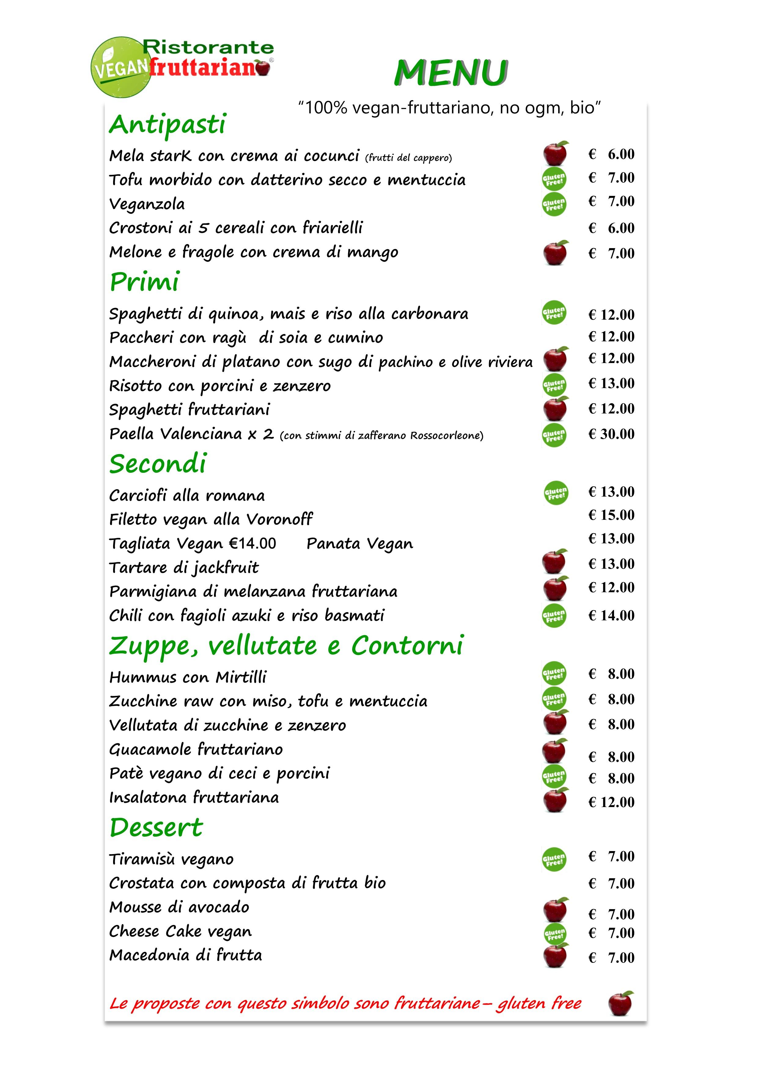 Il nostro menù che aggiorniamo periodicamente in funzione della disponibilità di frutti, ortaggi e verdure BIO e sostenibili.